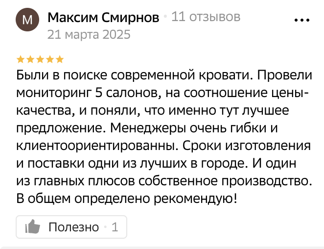 - Собственное высокотехнологичное производство, обновленное в 2024 году позволяет изготовить мебель в более быстрые сроки.